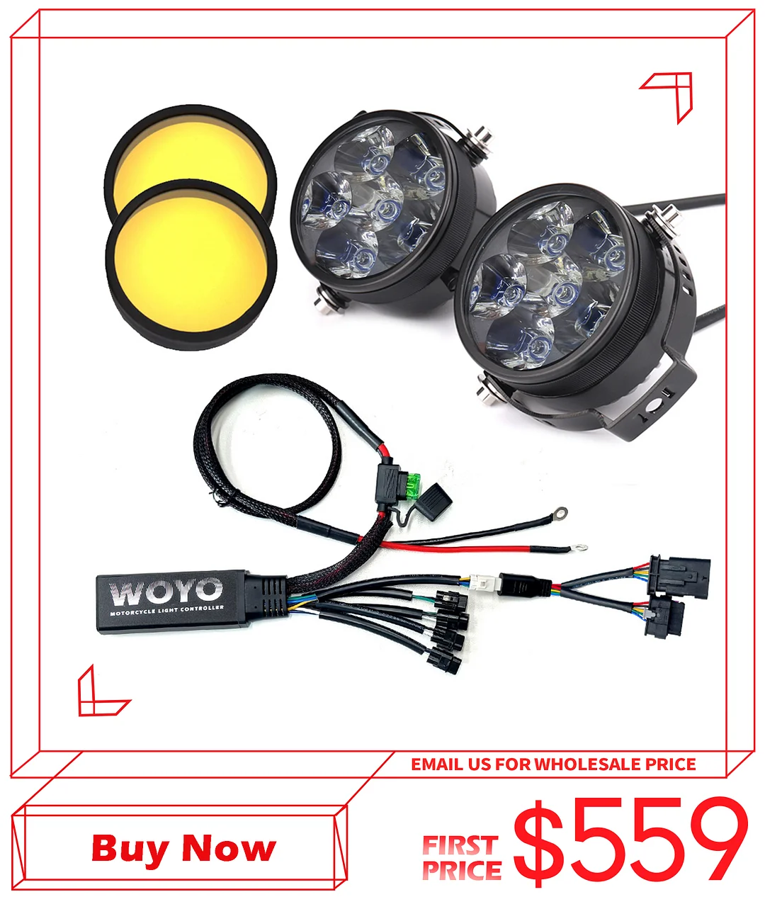 WOYO Motorcycle Light Controller with IP68 6000K 24000lms 60W Lamp
